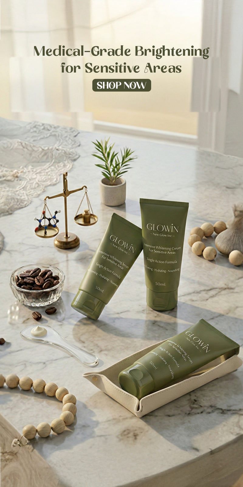 Finally something gentle! I’ve tried so many products after laser treatments and most of them irritated my skin. Glowin feels calming and lightweight. After 3 weeks I noticed my underarm tone looks more even. – Mariam A.